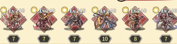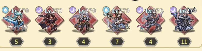 こういう感じでパーティの組み合わせを見れるのでまずはキャラごとの編成で似た感じの性能のキャラを選んでピックアップしてみましょう。パーティではSSRなどで組むだけではなくて効果やタレントでだいぶ進め方が後半では変わってきますので属性などをしっかり見ておくのが大事です。